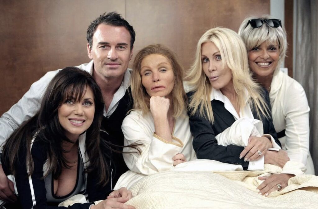 La série a également reçu de nombreuses guests au fil des saisons, et l’épisode 12 de la saison 5 est particulièrement intéressant pour les fans que nous sommes. En effet dans cet épisode on retrouve non seulement Donna Mills qui souhaite avoir recours aux bons soins des chirurgiens, mais pas seulement. Donna Mills lors d’une réception convie ses amies Deborah Shelton, Joan Van Ark (oui, oui!!!) et également Shari Belafonte (qui depuis 1989 est l’épouse de Sam Berhens, lequel en fit voir de toutes les couleurs à Val dans Côte Ouest). Dans l’épisode on croise aussi Sharon Gless, connue pour son rôle dans la série Cagney et Lacey ainsi que pour son rôle de mère idéale dans Queer as folk), le beau John Schneider (Bo Duke dans Sherif fait moi peur), ainsi qu’Annalyne McCord, dont certains se souviennent peut-être dans les saisons 2012 de Dallas.