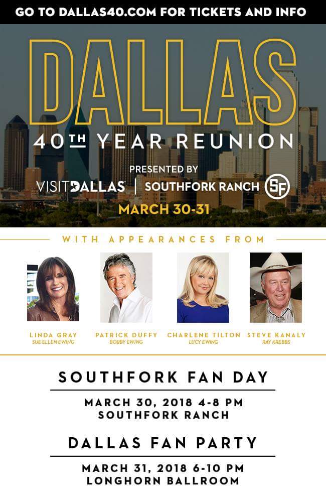 Les acteurs de Dallas ont connus une gloire mondiale grace à la série et depuis la fin des tournages en 1991, Dallas à acquis le statut de série culte. A ce titre chaque participation d’un ou de plusieurs acteurs à une rencontre publique est un véritable événement pour les fans. Linda Gray, Patrick Duffy et Larry Hagman, mais aussi Charlène Tilton et Steve Kanaly sont toujours dans les premiers a répondre présent pour célébrer Dallas.