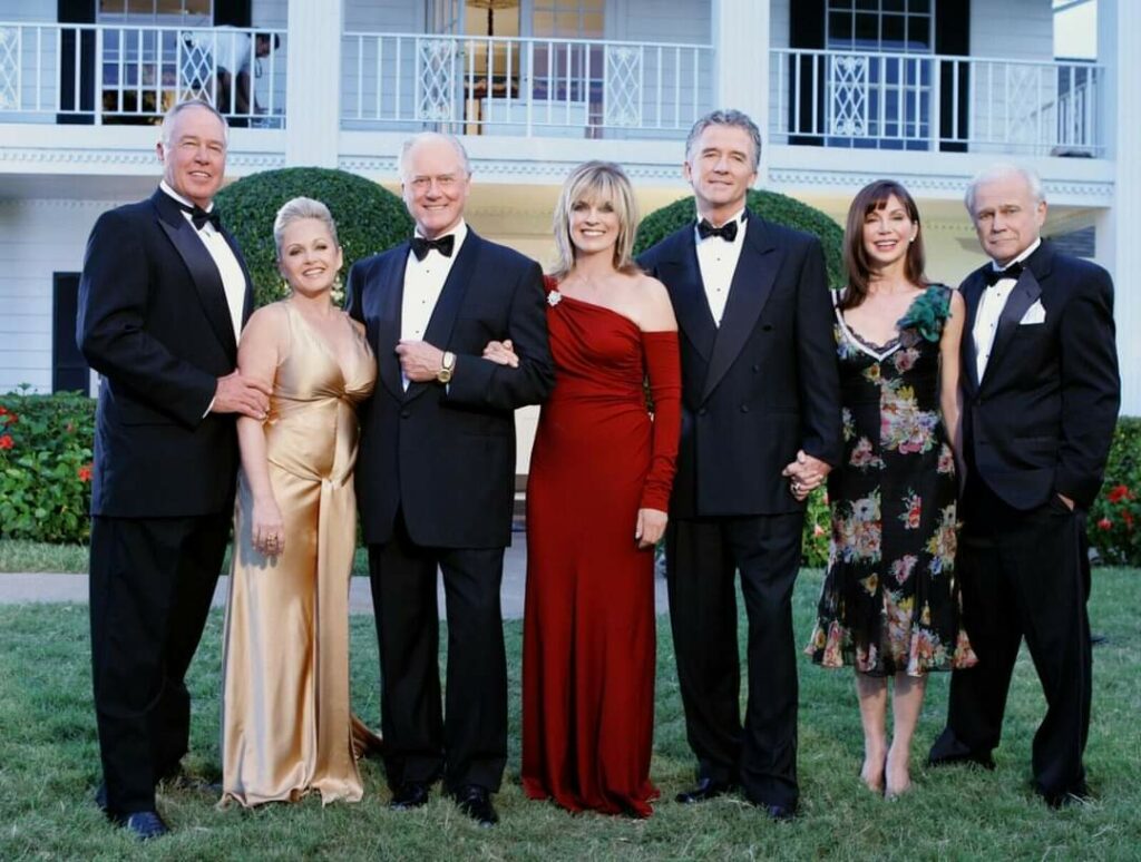 Vous reconnaissez sans aucun doute Patrick Duffy, Michelle Lee, Charlène Tilton, Linda Gray, Steve Kanaly, Deborah Rennard, Deborah Tranelli, Christopher Atkins, Donna Mills et Andrew Stevens (en haut)