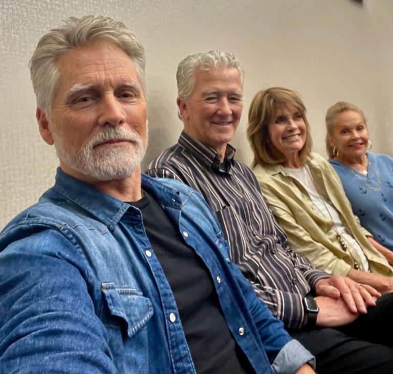 Quelle équipe formidable à la réunion Dallas à Southfork aujourd’hui ! Cathy Podwell, Patrick Duffy, Christopher Atkins et sa compagne, avec la charmante Charlène Tilton aux côtés de Sheree Wilson, une autre personne particulièrement délicieuse, et bien sûr, moi-même et Andrew Stevens, un frère Gémeaux de quelques jours plus âgé, mais tout aussi Grey. En parlant de Grey, bien sûr, notre chère Linda. Quel groupe généreux et créatif ! Félicitations et reconnaissance à ces collègues artistes ! Merci pour les sourires et les bonnes ondes partagées. À la santé des conteurs !