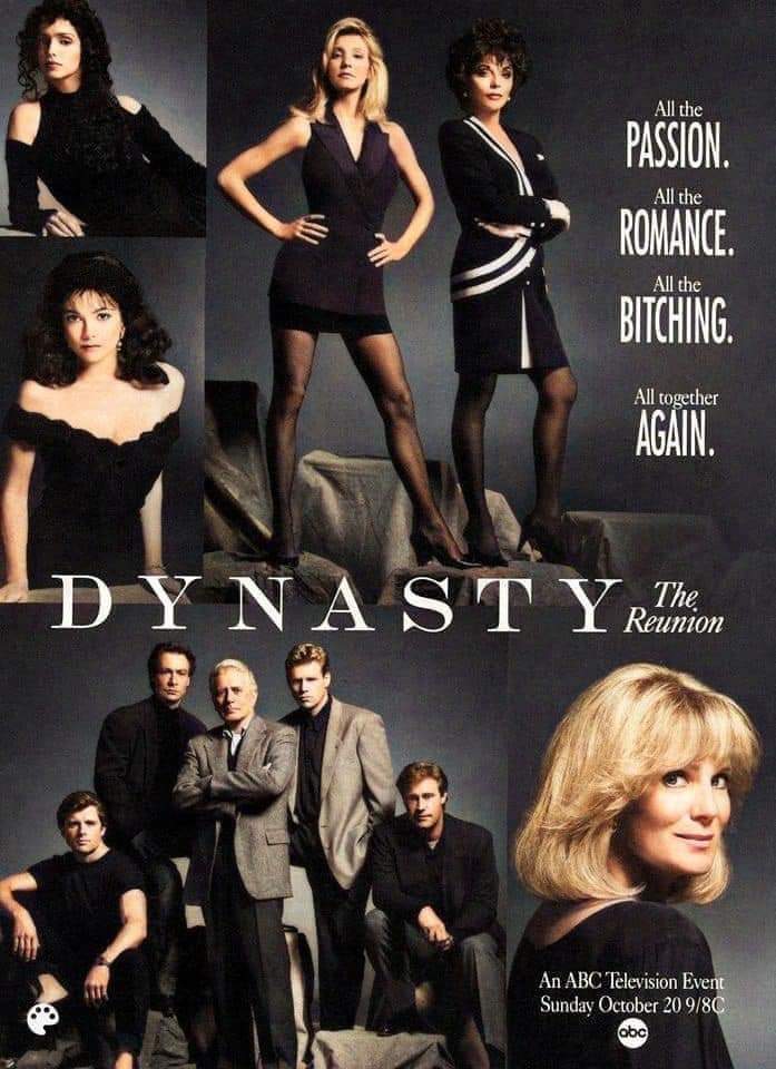 Diffusé en 2 parties de 90 minutes les 20 et 22 octobre 1991 sur la chaine ABC, ce téléfilm, tout simplement intitulé Reunion (La réunion en v.f.) voit le retour de la plupart des acteurs (a quelques exceptions notables cependant) et l’apparition de quelques personnages nouveaux pour le fonctionnement de l’intrigue. Le dernier épisode datant de 1989, deux ans et demi ce sont donc écoulés depuis le cliffhanger du dernier épisode et les éléments de résolution de ce cliffhanger sont dissimulés tout au long de ce téléfilm. Malheureusement ce téléfilm est aujourd’hui introuvable en français, ni en DVD ni en streaming. La version française à bien été diffusée à la télé et elle est sortie à l’époque en VHS (un coffret de 2 cassettes sobrement intitulé Dynastie, La Vérité absolue) mais l’édition DVD ne contient apparemment que la version originale sans aucun sous-titre.