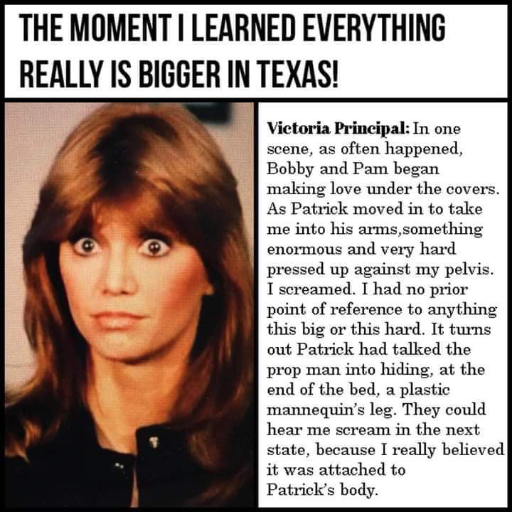 Pour une fois je me permet un petit article un peu grivois. Mais comme ce n’est pas moi mais Victoria Principal qui le dit, personne n’y verra offense. Ce petit encadrĂ© est paru dans la presse, je me permet simplement une transcription pour que les non anglophones puissent comprendre de quoi parle notre chĂšre Pamela…
