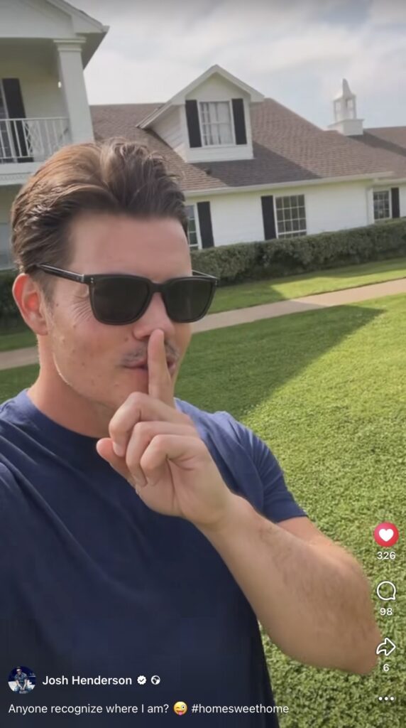 Aujourd’hui Jeudi 16 avril 2026, Southfork Ranch est fermé au public sans annonce préalable et au cours de la journée, sur ses réseaux sociaux, Josh Henderson lui-même a publié une brève et mystérieuse vidéo, un doigt sur la bouche, et montrant en arrière plan le fameux ranch adoré de tous.
